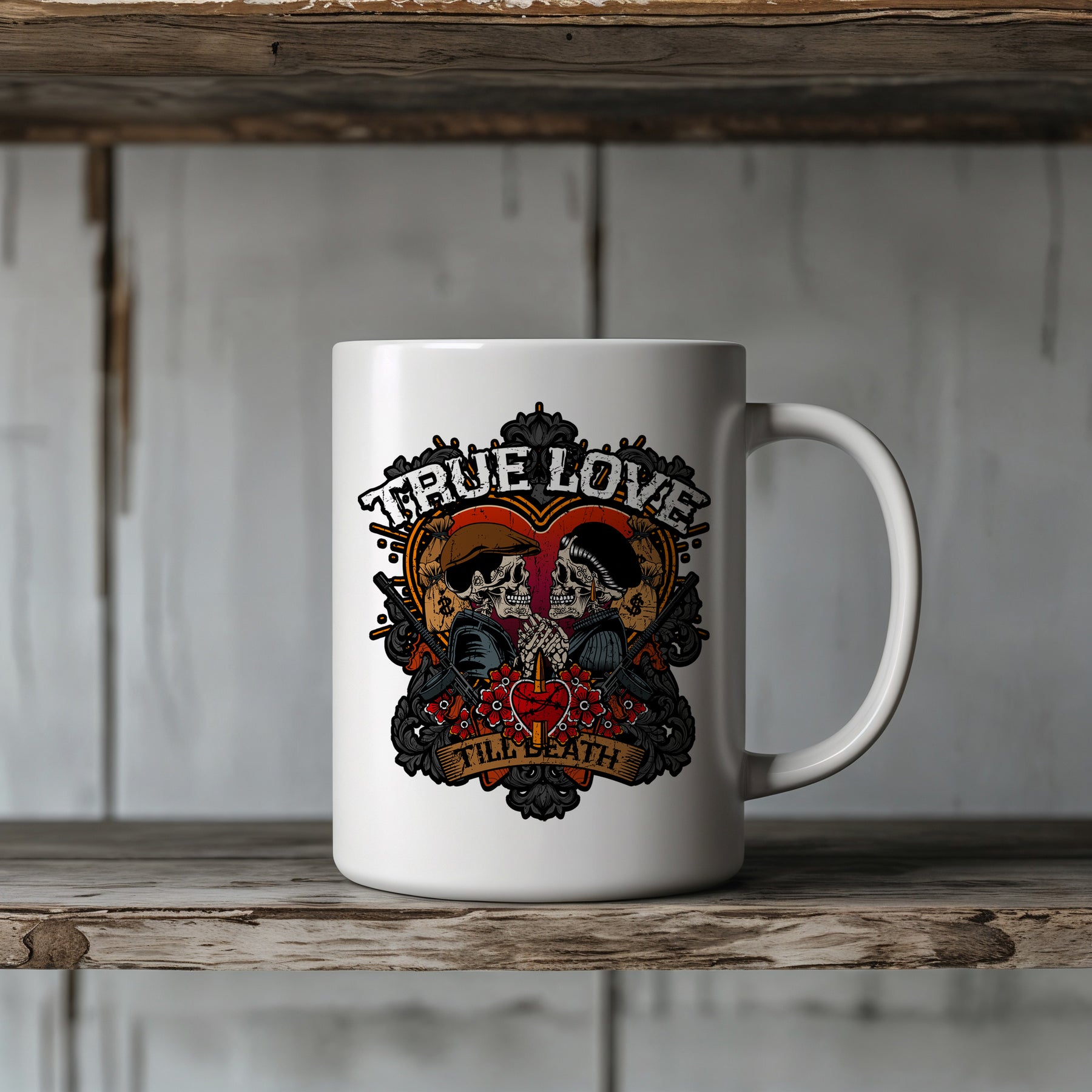 True Love Tasse | Kaffeetasse Gothic Tattoo Kaffeebecher Bonnie Clyde Geschenk Rockabilly