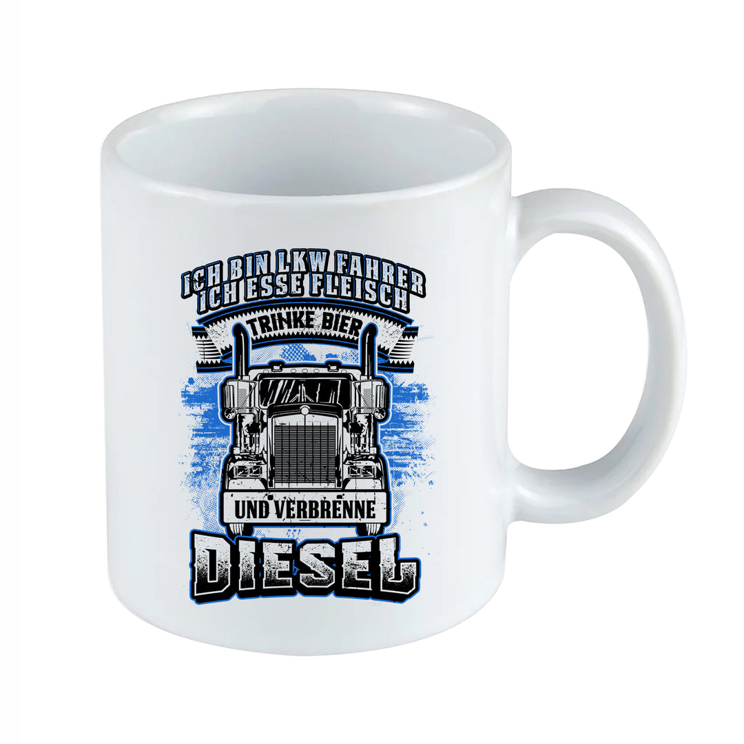 Fleisch Bier Diesel Tasse | LKW Fahrer Kaffeetasse Trucker Kaffeebecher mit Spruch